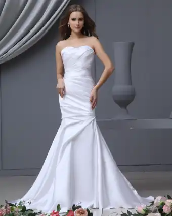 Satin Ruffle Applikasjon Kjaereste Domstol Havfrue Brudekjoler Bryllupskjoler