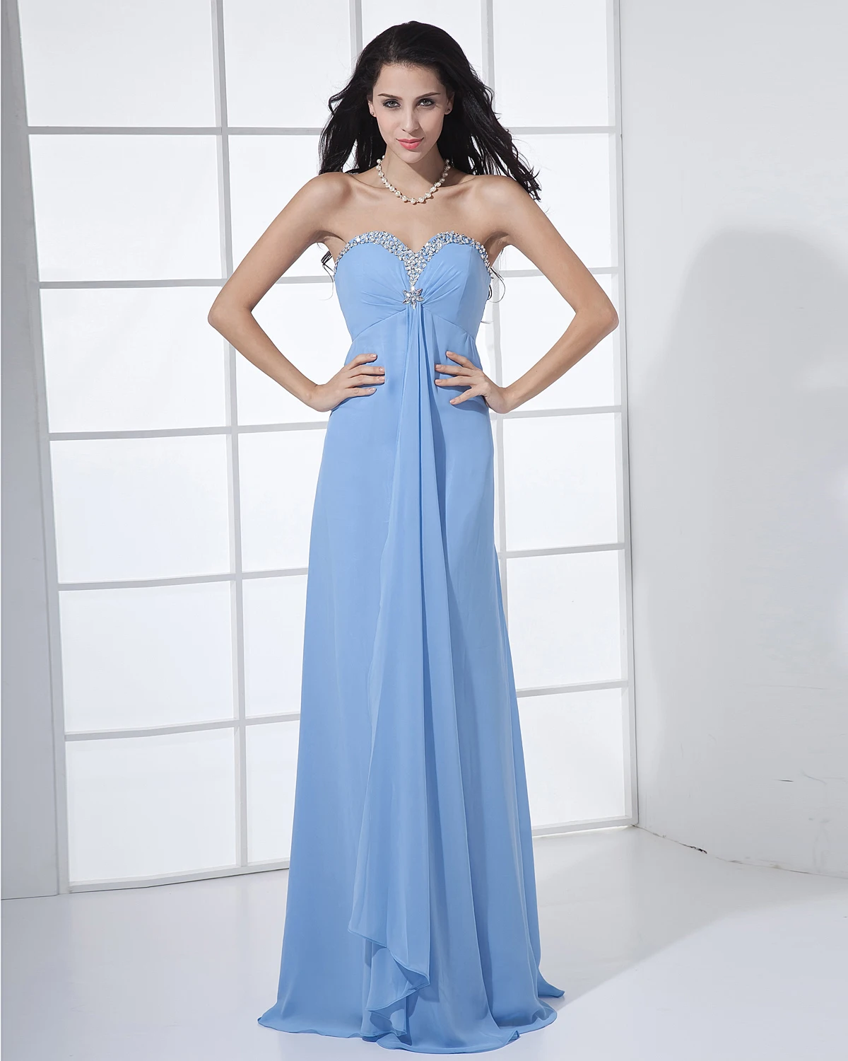 Chiffon Beading Kjaereste Gulv Lengde Brudepikekjoler