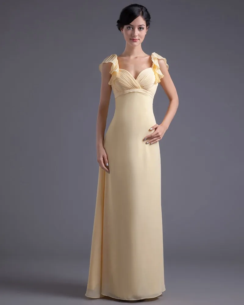 Gulv Lengde Kjaereste Petal Ermet Plissert Chiffon Mor Til Bruden Kjole