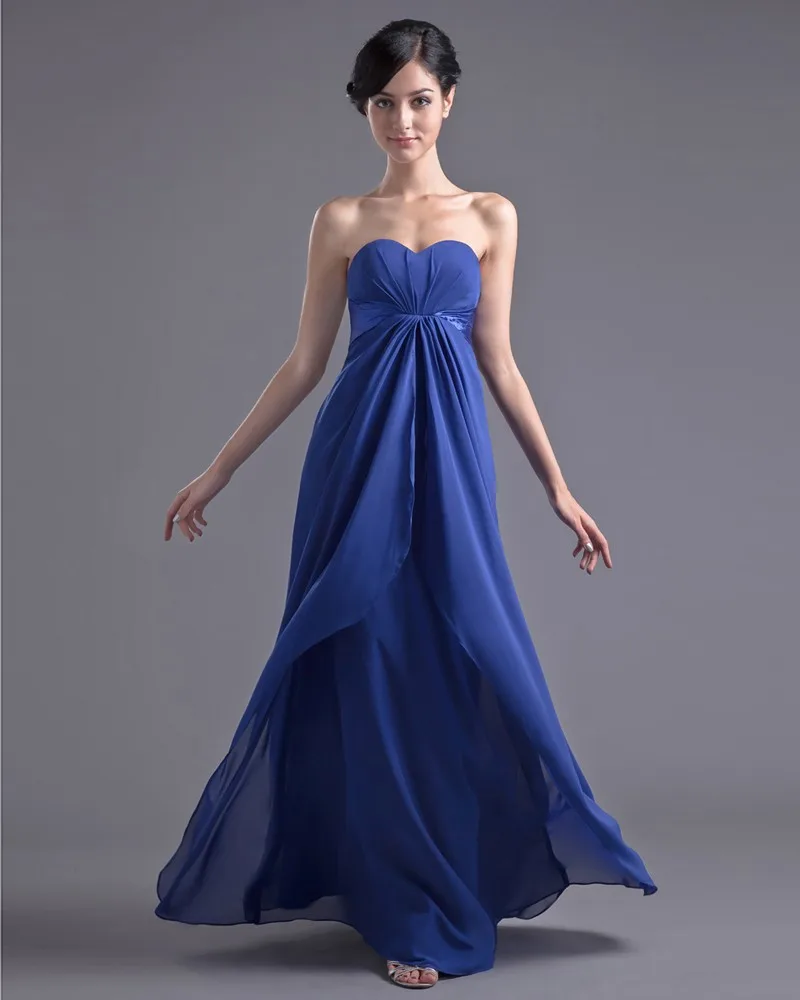 Mote Chiffon Plissert Kjaereste Gulv Lengde Brudepikekjoler