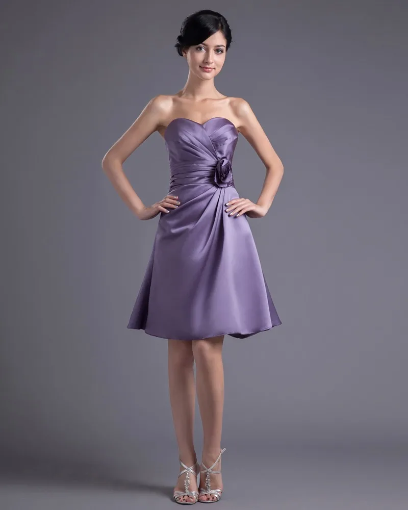 Mote Satin Plissert Blomst Kjaereste Knelange Brudepikekjoler