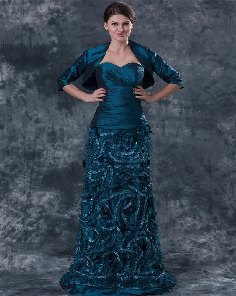Taffeta Kjaereste Krusning Blomst Gulv Lengde Modre Av Bruden Gjester Kjoler